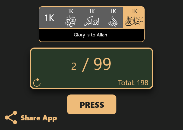 Digital version of tasbeeh for muslims dzikr activity